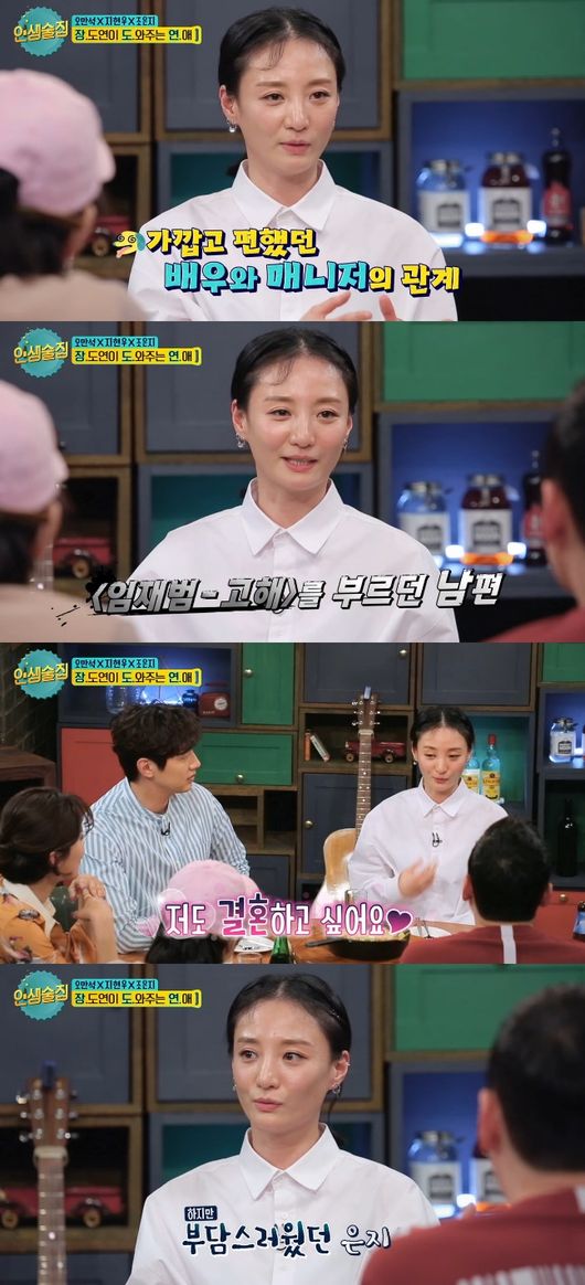조은지는 지난 26일 방송된 tvN '인생술집'에 지현우와 함께 출연해 소속사 대표인 남편과 결혼을 하기까지의 러브스토리를 공개해 모두의 이목을 집중시켰다.