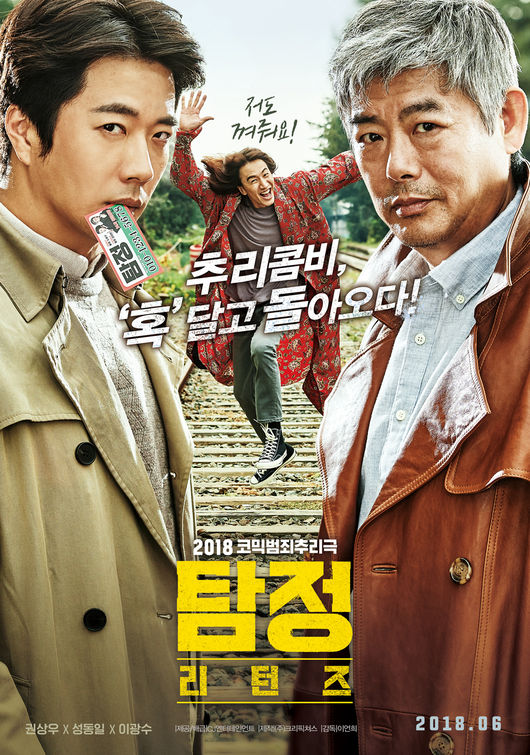 영화 '탐정: 리턴즈'는 셜록 덕후 만화방 주인 ‘강대만’(권상우)과 레전드 형사 '노태수'(성동일)가 탐정사무소를 개업, 전직 사이버수사대 에이스 '여치'(이광수)를 영입해 사건을 파헤치는 코믹범죄추리극.