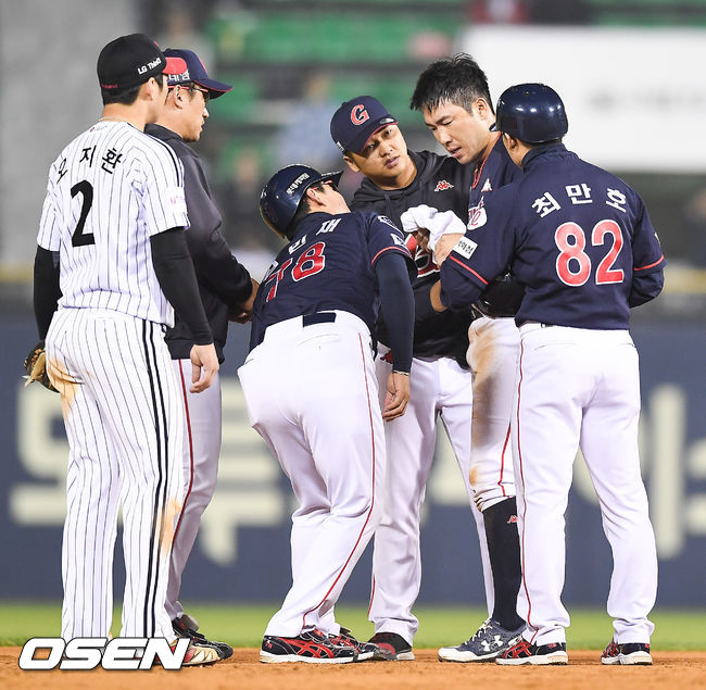 전준우의 헬멧이 코 쪽을 찍었다. 고통을 호소했지만 가벼운 찰과상이 생겼고 일단 경기는 모두 소화했다.