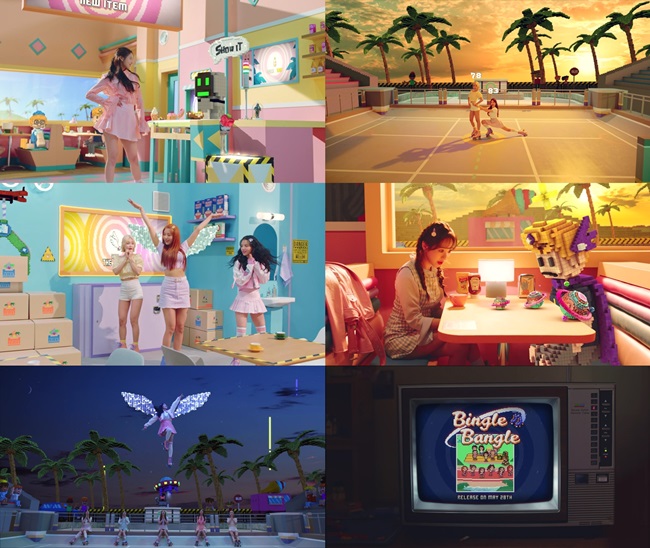 공개된 티저 영상에서 AOA는 신곡 ‘빙글뱅글’의 흥겨운 휘파람 소리를 배경으로 8비트 게임 속 캐릭터로 변신해 눈길을 끌었다. 멤버들은 각자 롤러스케이트를 타고 귀여운 게임 세계를 돌아다니는 흥겨운 모습을 담아냈다.