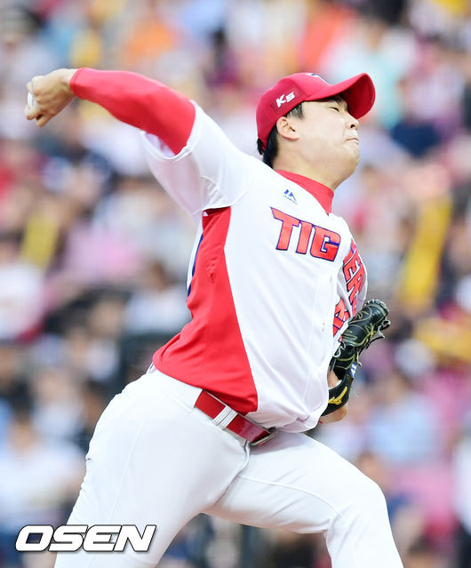 KIA 우완투수 한승혁이 1이닝 만에 조기강판했다.