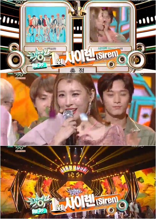 21일 방송된 KBS 2TV '뮤직뱅크'에서는 1위 후보로 방탄소년단 'IDOL'과 선미 '사이렌'이 격돌한 가운데 선미가 1위 트로피를 거머쥐었다.