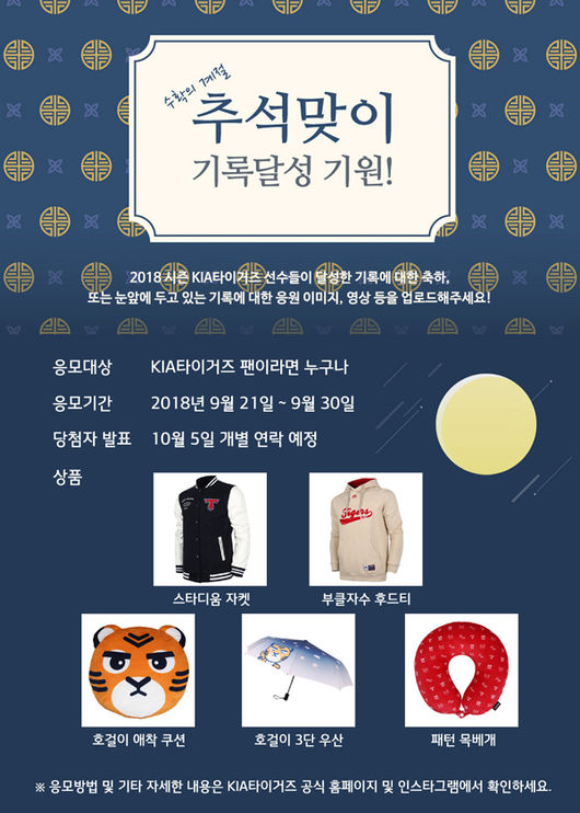 KIA타이거즈가 추석을 맞아 오는 30일까지 홈페이지와 SNS(트위터/인스타그램) 이벤트를 실시한다.