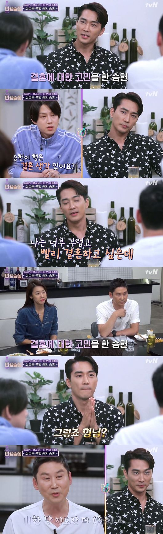 '인생술집' 송승헌이 신동엽과의 우정부터 결혼 생각까지, 자신에 대한 솔직한 입담으로 시청자들을 사로잡았다.