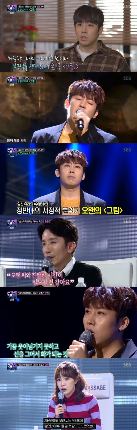 다음은 오왠이 무대를 올랐다. 방송 직후 늘어난 유명세를 체감한다고 했다. 기억에 남는 댓글에 대해 오왠은 "힘들 줄 알고 미리 제 음악을 듣고 하루를 시작했다는 말"이라며 자신의 음악이 위로가 됐다는 말이 힘이 됐다고. 다음 무대에 대해 오왠은 '그림'을 소개 "청춘의 관련된 이야기를 주로 썼지만, 처음으로 나의 이야기를 벗어나 부모님에 대해 썼다"면서 "서로에게 주고받을 거 같은 이야기를 쓴 노랫말, 부모님의 모습이 제가 생각하는 가장 이상적인 모습이라 그림이라고 붙였다"고 했다. 가장 먼저 부모님께 들려드렸다는 오왠은 "이제까지 살아왔던 세월이 그림처럼 흘러간 것 같다고 하더라"면서 뿌듯해했다.