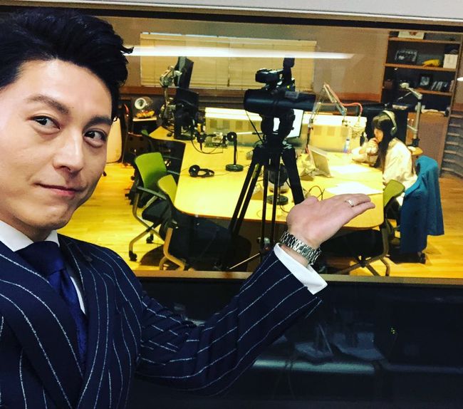 공개된 사진 속에는 라디오 진행에 열중하고 있는 박하선을 가리키며 라디오 부스 밖에서 사진을 찍고 있는 류수영의 모습이 담겨 있다. 아내를 향한 달달한 애정이 훈훈함을 자아낸다.