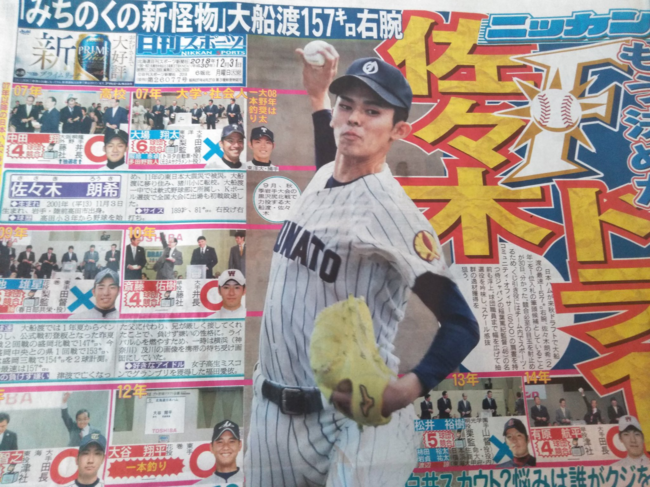 [사진]사사키를 소개한 닛칸스포츠 1면.