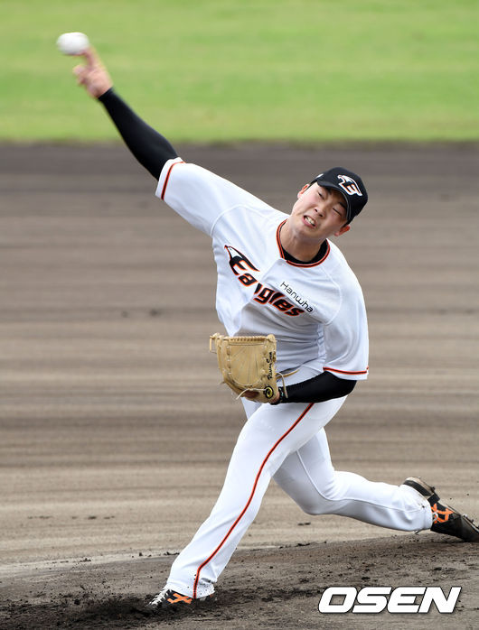 한화 토종 선발로 낙점된 김성훈이 시범경기 첫 등판에서 호투했다.