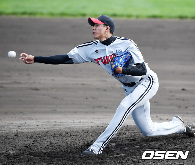 LG 신인 투수 정우영이 첫 시범경기 등판에서 깔끔한 피칭을 선보였다.