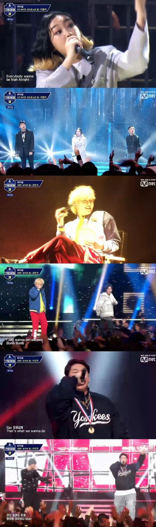 지난 12일 방송된 Mnet 예능 '고등래퍼3' 최종회에서는 파이널 무대를 꾸미는 권영훈, 최진호, 양승호, 이영지, 강민수, 이진우의 모습이 전파를 탔다.