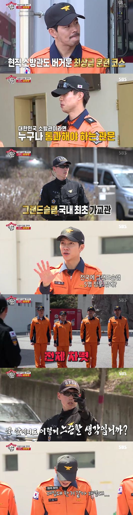 본격적으로 강도 최상의 첫 코스인 체력훈련이 시작, 소방관들은 "대한민국 소방관이라면 이 테스트를 통과해야한다"고 말했다. 이어 교관이 도착, 소방관련 자격증 3종인 전 부문을 1급 취급한 케이스인 '그랜드슬램'을 이룬 소방관이었다. 그는 카리스마 넘치는 모습으로 멤버들의 위험한 화재훈련 앞두고 엄격한 정신개조부터 시작했다. 모두 숨을 헉헉 거렸고, 이승기는 "재입대 한 것 같다"며 긴장했다.