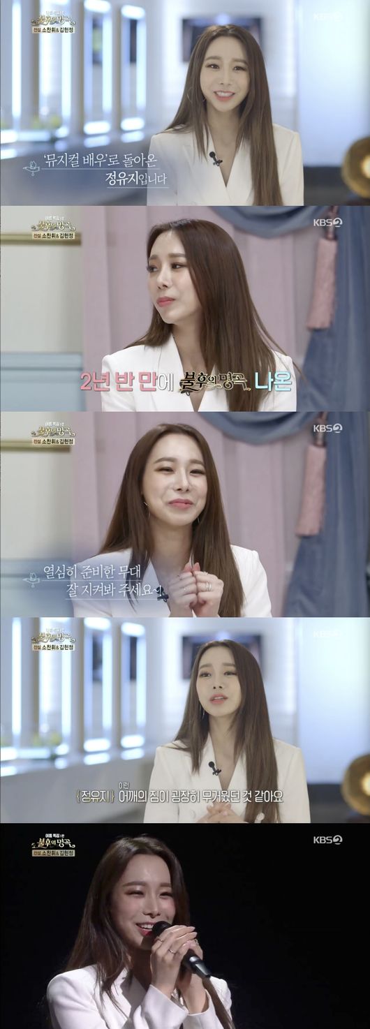 베스티의 메인보컬로 활약했던 정유지는 지난 2017년 팀을 탈퇴한 후 뮤지컬 배우로 전향했던 바, 이날 '불후의 명곡'도 2년 반만에 출연했다.