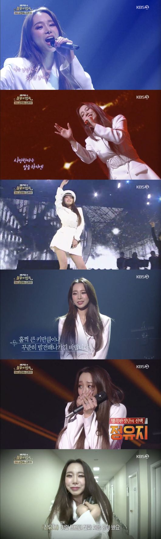 베스티 메인보컬에서 뮤지컬 배우로 변신한 정유지가 '불후의 명곡'에서 처음으로 우승을 차지했다.