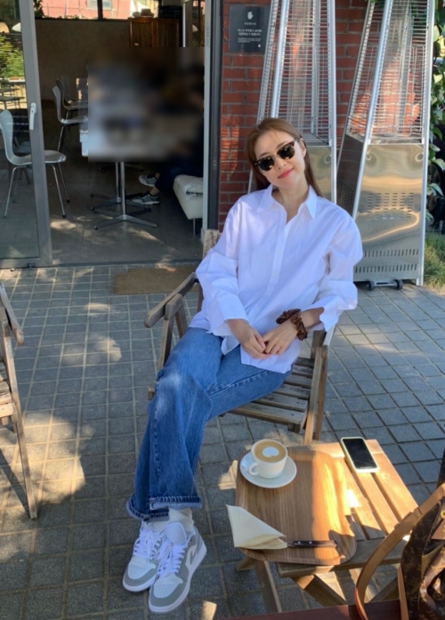 공개된 사진 속 이연희는 한산한 카페의 야외 테이블에 앉아 커피를 마시며 여유로운 시간을 보내는 모습이다.