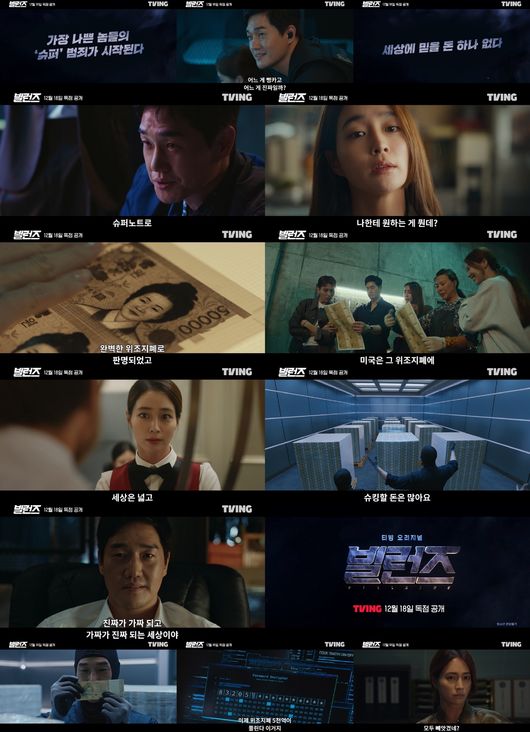 오는 12월 18일(목) 공개되는 티빙 오리지널 '빌런즈'(연출 진혁, 극본 김형준, 기획 CJ ENM, 제작 태원엔터테인먼트, 제공 티빙) 측은 1일, 진짜와 가짜가 뒤섞인 판 위에서 속고 속이는 게임을 펼칠 나쁜 놈들의 전쟁이 극강의 몰입감을 자아내는 메인 예고편을 공개했다.