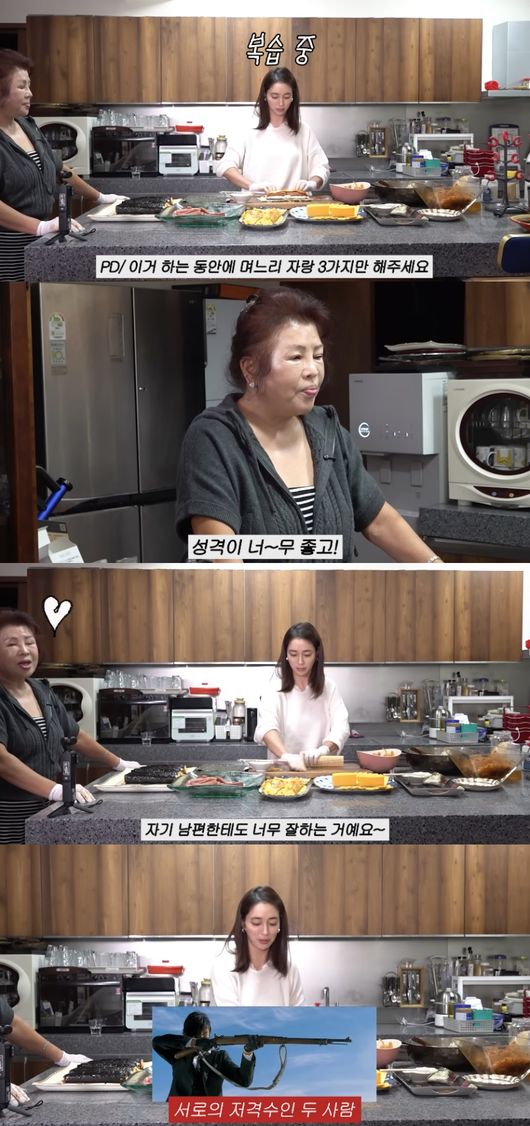 시어머니는 “어려운 숙제를 내주고 그러면 내가 참 여간 곤란하지”라면서도 ‘며느리’ 이민정에 대해 “성격이 너무 좋다. 너무 좋고 자기 남편한테도 너무 잘하는 거다. 그래서 나는 그게 너무 감사하고 또 새끼 잘 키워. 살림 잘해. 흉을 볼만 한 게 없다”라고 극찬했다.