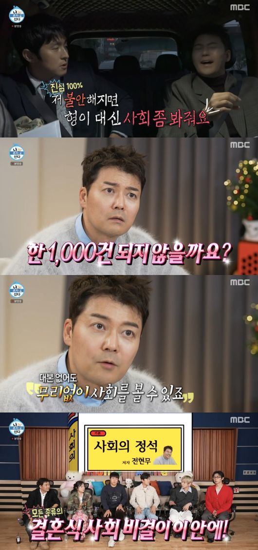 그러자 기안84는 “형은 결혼식 사회로 책을 써도 될 것 같다”라고 했고, 코드쿤스트는 “사회의 정석”이라고 거들었다. 이에 키는 “모든 가짓수를 다 해 본 거 아니냐”라고 감탄하자 전현무는 “각계각층 다 해봤다”라고 답했다.