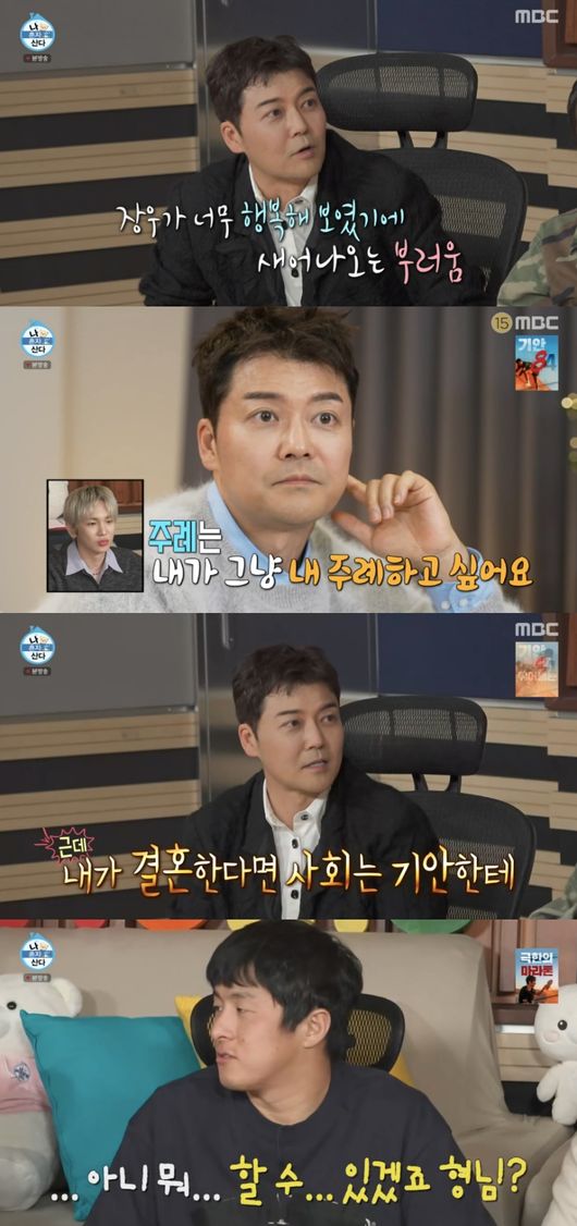 성공적으로 주례를 마친 전현무에 코드쿤스트는 “형 기분이 어땠냐”고 물었다. 이에 전현무는 “부러웠다. 장우가 부러웠다. 원래 나는 결혼식 사회보고도 ‘쓸쓸하다. 나도 저렇게 되고 싶다’ 한 번도 생각해 본 적 없다. 둘이 너무 행복해 보이니까 부러운 감정이 진짜 오랜만에 왔다“라고 털어놨다.