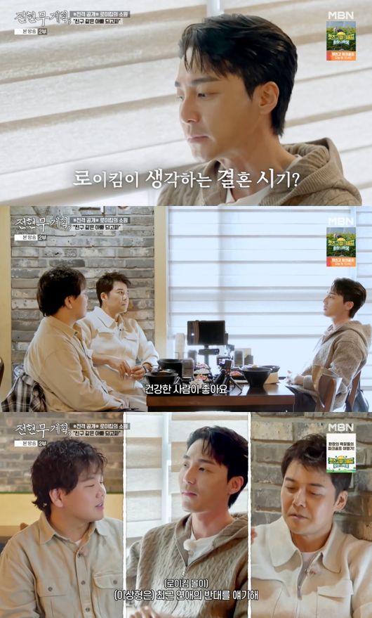 전현무는 로이킴을 향해 "(마흔까지) 6년 정도 남았다"라며 계획을 물었다. 이에 로이킴은 "그 안에 해보고 싶다"라고 바람을 전하며 이상형에 대해서도 "건강한 사람이 좋다. 정신적으로 삶의 감정 파동이 너무 크지 않은 사람이 좋다"라며 "부정적인 마음에 오래 빠진 분이랑은 연애든, 친구든 못 만난다"라고 선을 그었다.