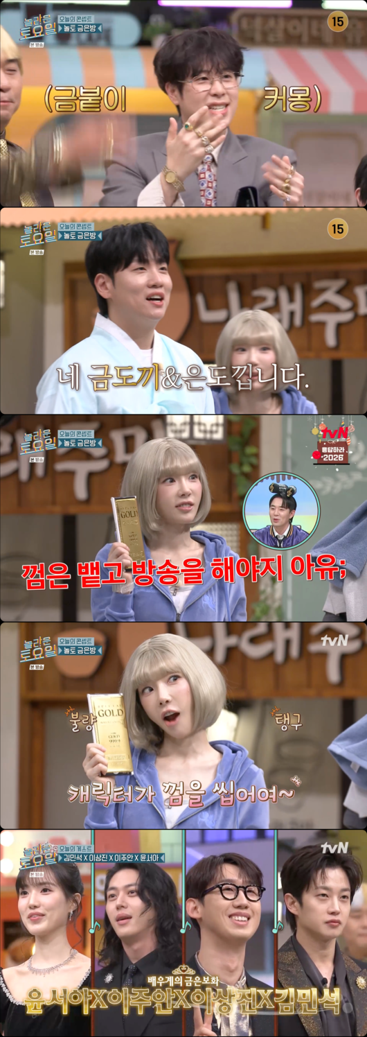 20일 전파를 탄 tvN '놀라운 토요일'에서는 ‘놀토 금은방에 배우계 금은보화 4인이 떴다!’라는 콘셉트로 ‘태풍상사’ 김민석X이상진 ‘폭군의 셰프’ 이주안X윤서아”가 등장했다.