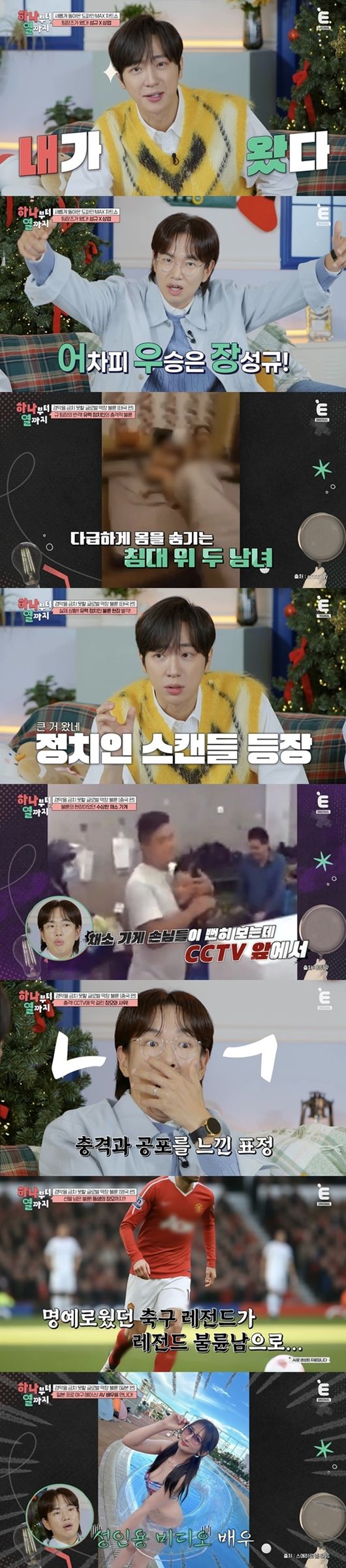 22일(월) 오후 8시 방송되는 티캐스트 E채널 '하나부터 열까지'는 새 MC 이상엽의 합류와 함께 한층 업그레이드된 모습으로 시청자들을 찾는다. 특히 이번 11회 방송부터는 장성규 팀과 이상엽 팀, 두 팀의 조사원들이 한 주간 발굴한 충격적인 사건들을 MC 두 사람이 대표로 소개하며 불꽃 튀는 1위 쟁탈전을 펼친다. 시작부터 승리를 향한 치열한 승부욕이 폭발한 가운데, 그 열기만큼이나 파격적인 주제 '글로벌 막장 불륜'이 도파민을 제대로 자극할 예정이다.