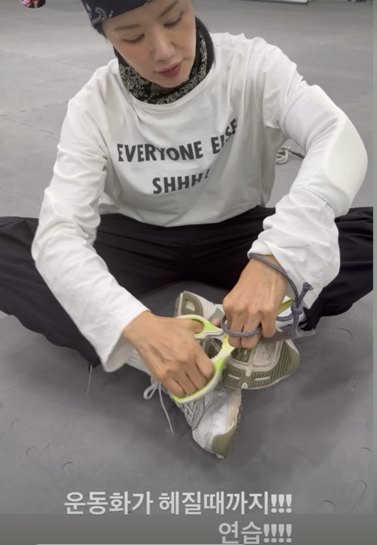 21일 엄정화는 ‘운동화가 헤질 때까지!!! 연습!!!!’이라는 글과 함께 영상을 게했다.