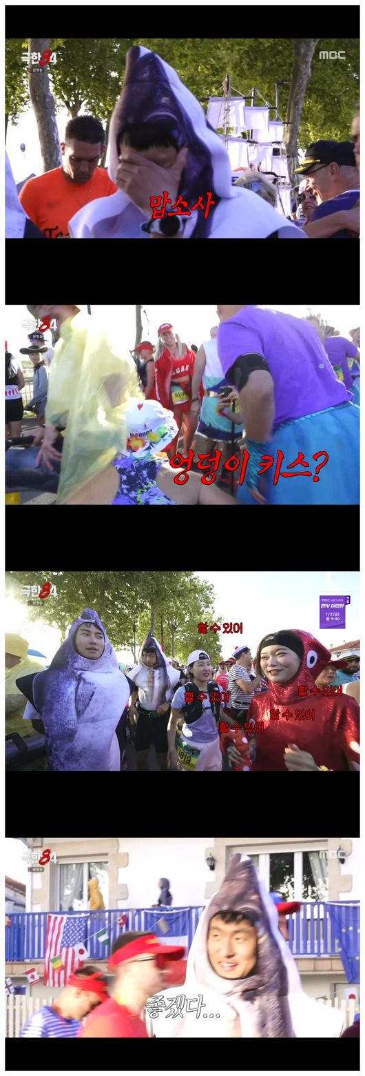 코스프레 의상으로 '어촌 콘셉트'가 정해졌다. 이은지는 해녀, 기안84와 권화운은 고등어였다. 츠키는 새빨간 반짝이의 오징어 의상이 걸렸지만 꾹 참고 하프 완주 연습에 나섰다.