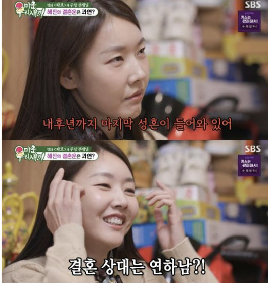 최근 방송된 SBS ‘미운 우리 새끼’에서 한혜진은 무속인의 점사를 통해 결혼운을 봤다. 무속인은 그의 사주에 대해 “내후년까지 마지막 성혼이 강하게 들어와 있다. 결혼할 사람이 100% 있다”며 “연하 인연이 들어와 있다”고 단언해 눈길을 끌었다.