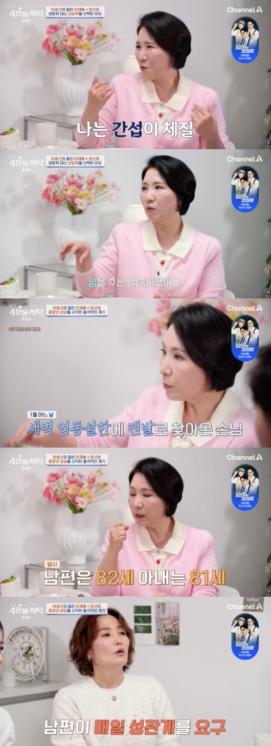 22일 방송된 채널A ‘절친 토큐멘터리 - 4인용식탁’(이하 4인용식탁)에는 상담가 이호선이 출연, 절친으로 아나운서 이재용, 코미디언 정선희를 초대하는 시간을 가졌다.