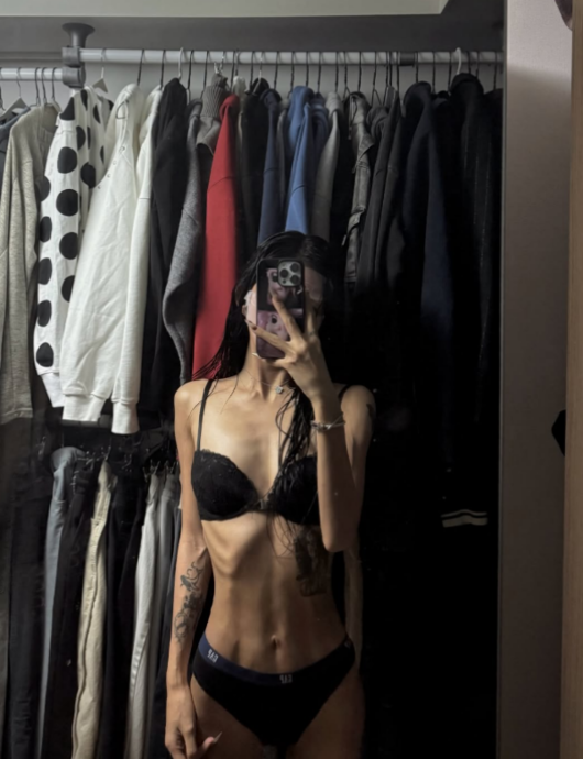 공개된 사진에는 속옷 차림의 최준희가 담겼다. 그는 전신거울 앞에서 속옷만 입은 채 셀카를 찍고 있는 모습. 사진 속 최준희는 갈비뼈가 훤히 보이는 뼈말라 몸매로 눈길을 끌었다.