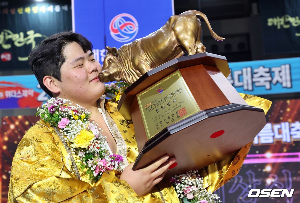 2025년 씨름대회를 총결산하는 ‘위더스제약 2025 의성 천하장사 씨름 대축제’(11월 29일. 의성종합체육관)에서 천하장사 2연패를 달성한 김민재(23. 영암군민속씨름단)는 그동안 큰 씨름꾼의 등장을 애타게 기다렸던 씨름계의 단비와 같은 존재다. 김민재는 2025년에 압도적인 경기력으로 3개 대회(2025 설날· 추석· 천하장사)에서 정상에 섰고, 개인 통산 17번째 장사 트로피(백두장사 14회· 천하장사 3회)를 들어 올렸다. 만약 시즌 중간에 부상만 없었더라면 최중량급에서 독무대를 이룰 수 있었을 것이다.