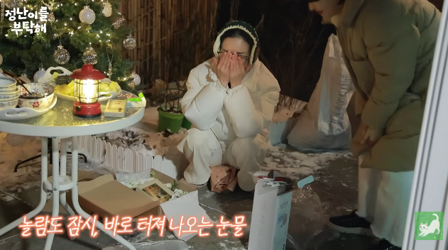 김정난은 "진짜? 너네가 준비한거라고? 난 아무것도 준비 못했는데?"라고 감동했고, 트리 밑에 제작진이 가져다 둔 선물들을 차례로 열어봤다.