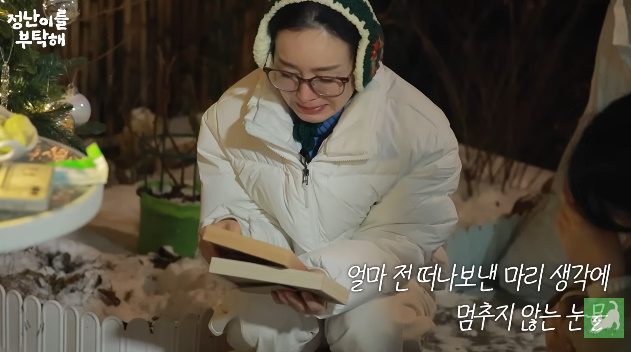 이날 김정난은 크리스마스를 앞두고 마당에 트리를 꾸미고 작은 홈파티를 했다. 그러던 중 크리스마스 트리를 꾸미는 김정난을 위해 제작진은 김정난의 반려묘 사진이 담긴 오너먼트를 서프라이즈로 선물했다.