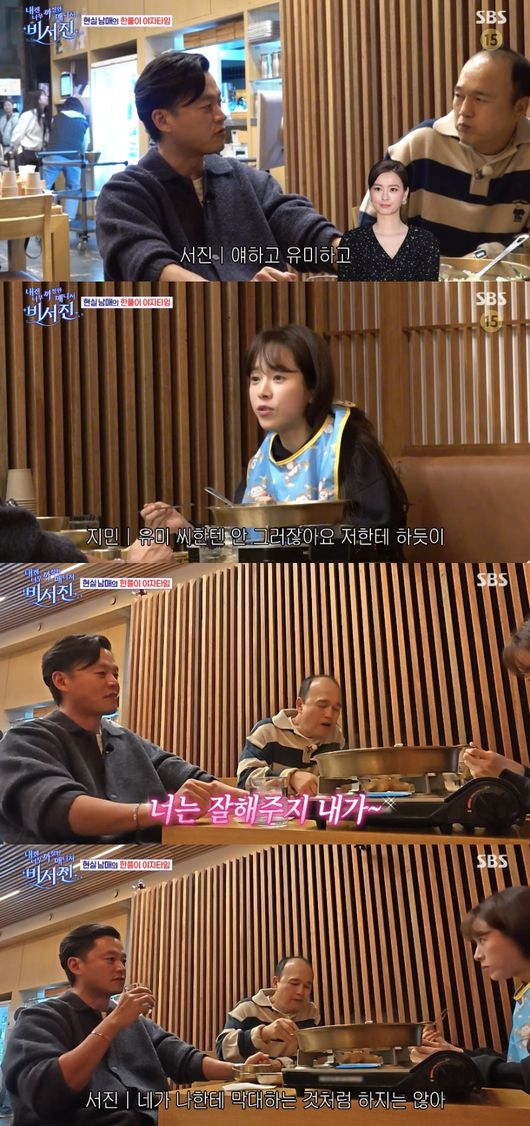 이서진은 “어차피 맨날 나한테 그렇게 하기 때문에 상관없다. 나한테 맨날 이런 애가 두 명있다”라며 한지민과 정유미를 언급했다. 이에 한지민은 “근데 유미 씨한테 안 그러잖아요. 저한테 하듯이 한다고요. 유미 씨한테?”라고 물었다.