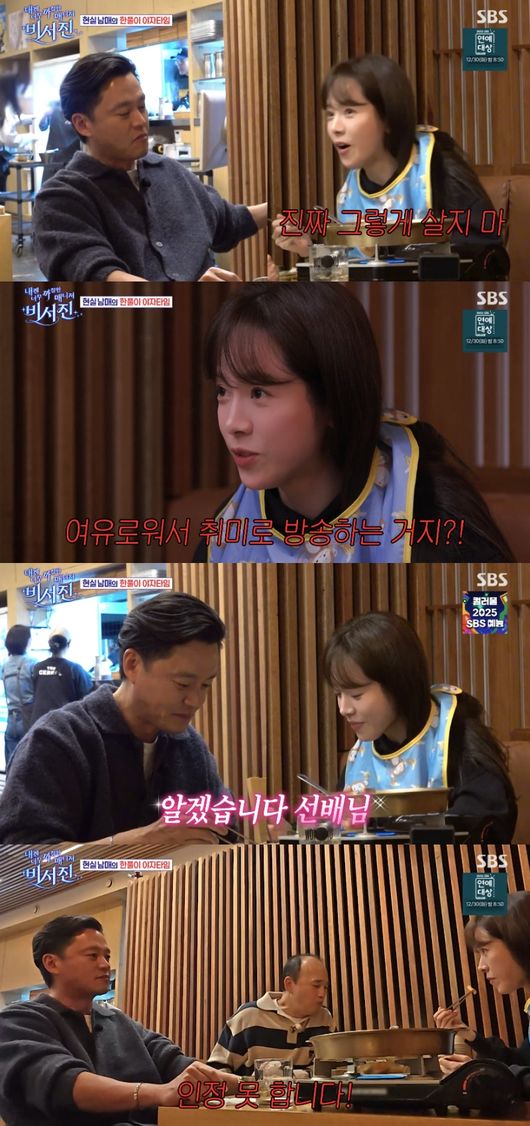 이서진은 “너는 잘해주지 내가”라고 했고, 놀란 한지민은 “거기는 더하다고요? 진짜 말도 안돼”라고 믿지 못했다. 이서진은 “걔는 그냥 반말만 하지만 네가 나한테 막대하는 것처럼 하지 않아 걔는”라고 일침을 날렸다.