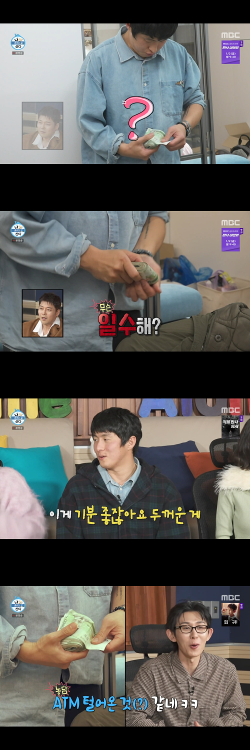 이에 기안84는 “5만 원짜리보다 이게 낫지 않냐. 100만 원이다”며 “이렇게 드려야 아껴 쓰신다”고 말했고, 이에 전현무는 “아예 5천원짜리로 드리지 그랬어”라고 유머있게 반응했다. 이에 기안84는 “만원 짜리밖에 안뽑히더라고”라고 반응해 웃음을 유발했다.