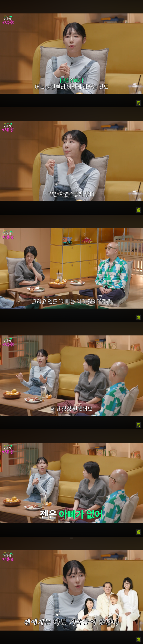 그는 “젠이 ‘아빠는 어디 있어?’라고 물었을 때, 더 이상 피하지 않고 ‘젠은 아빠가 없어’라고 솔직하게 말해왔다”며 “대신 할머니, 할아버지 등 젠을 사랑해주는 가족들이 많이 있다는 식으로 설명했다”고 밝혔다. 사유리는 아이 역시 이를 자연스럽게 받아들였다고 덧붙였다.