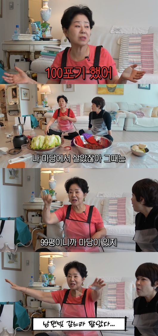 선우용여는 “(청담동 집이) 99평이니까 마당이 있었다”라면서도 이후 남편빚 갚느라 팔았다고 전했다. 그러면서 그는 “우리 어머니가 신이 났다. 배추만 하는 게 아니었다. 갓김치도 하고 깍두기도 하고 그랬다”라고 덧붙였다.