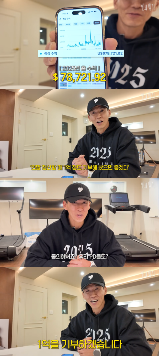 션이 유튜브 수익 1억 원을 전액 기부한다.