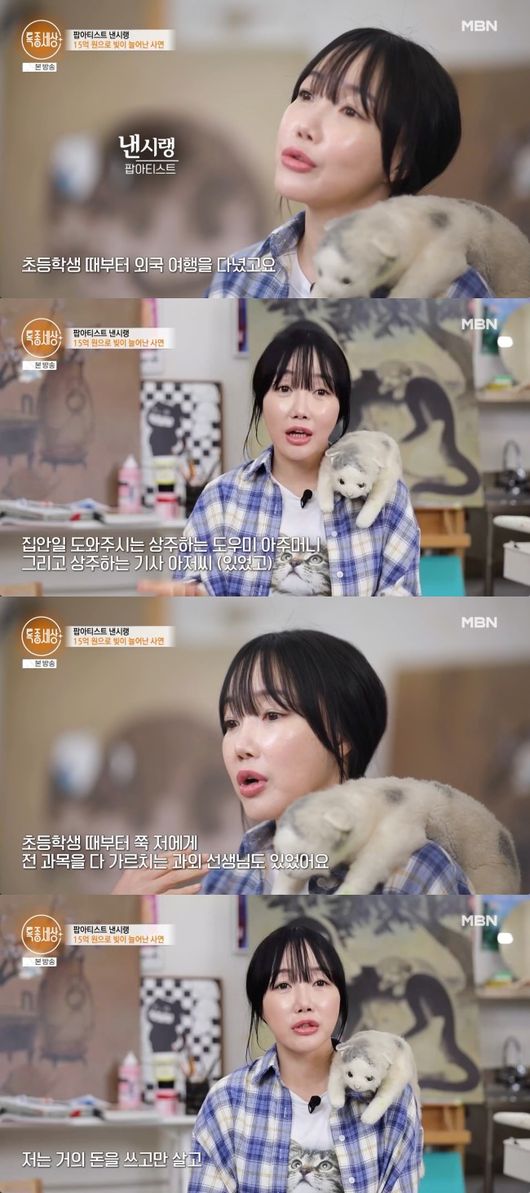 사실 낸시랭은 어렸을 때부터 유복한 환경서 자라왔었다. 낸시랭은 “초등학교 때부터 해외여행을 다녔고, 대학교 때까지 쭉 압구정동에 살면서 학교를 다 나오고, 집안일 도와주시는 상주하는 도우미 아주머니, 그리고 상주하는 기사 아저씨, 초등학교 때부터 쭉 저에게 전 과목을 다 가르치는 과외 선생님도 있었다. 거의 돈을 쓰고만 살고 그 풍요로움을 저희 어머니 덕분에 누리고 산 게 다”라고 유복했던 어린 시절에 대해 회상했다.