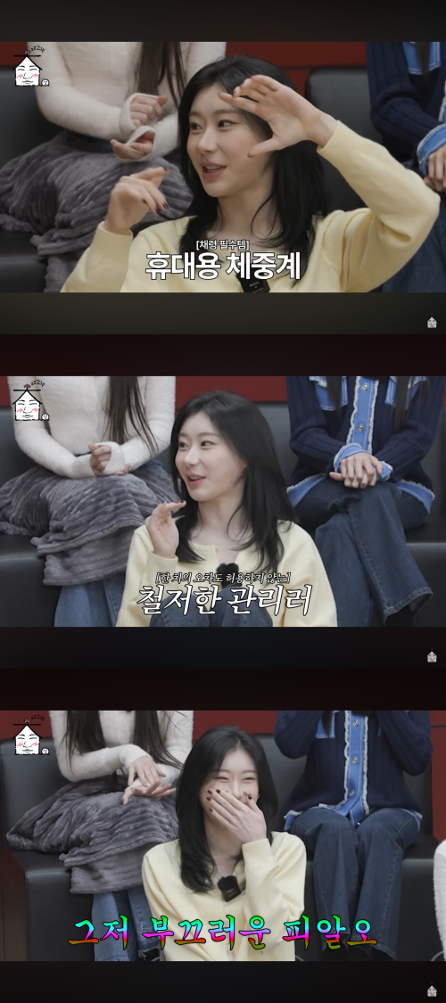 이날 채령은 “투어를 갈 때 작은 휴대용 체중계를 챙긴다”고 밝혀 눈길을 끌었다. 그는 “호텔마다 체중계 오차가 조금씩 있어서, 정확하게 확인하려고 들고 다닌다”고 설명했다. 이를 들은 대성은 “그럼 매일 체크하는 거냐”며 놀라움을 감추지 못했다.