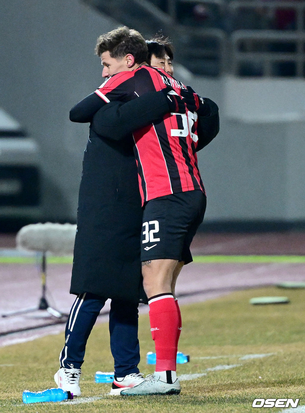 전반 FC서울 클리말라가 페널티킥 선제골을 작렬시킨 뒤 김기동 감독과 인사를 나누고 있다. 2026.02.17 / dreamer@osen.co.kr