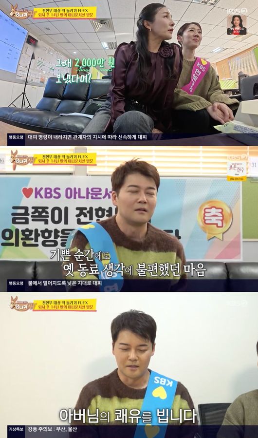 이에 전현무는 “부담되긴 했다"라며 "(하지만) 나도 아나운서였기 때문에 안다. 한달이라도 월급을 못 받으면 당장 카드값이 걱정된다”며 오랜 기간 급여를 받지 못했던 동료들을 걱정했던 마음을 드러냈다. 당시 MBC 연예대상을 수상했던 전현무는 소감으로 “고향에도 봄바람이 불기를 간절히 바란다”라며 KBS 친정 식구들을 향한 응원을 전해 뭉클한 감동을 선사한 바. 이에 엄지인은 “당시에 정말 큰 위로가 됐었다”라며 특별한 감사를 전한다.