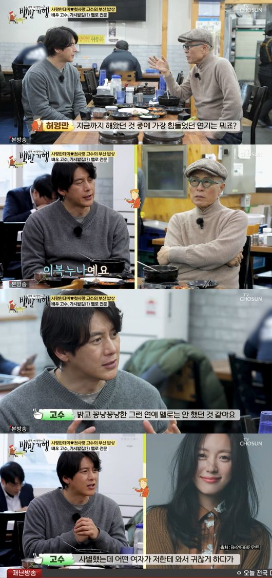 허영만은 “그때 이복동생을 좋아하는 역할이었나?”라고 했고, 고수는 “이복누나”라고 정정하며 “밝고 꽁냥꽁냥한 그런 연애, 멜로 안 했던 것 같다”라고 밝혔다.
