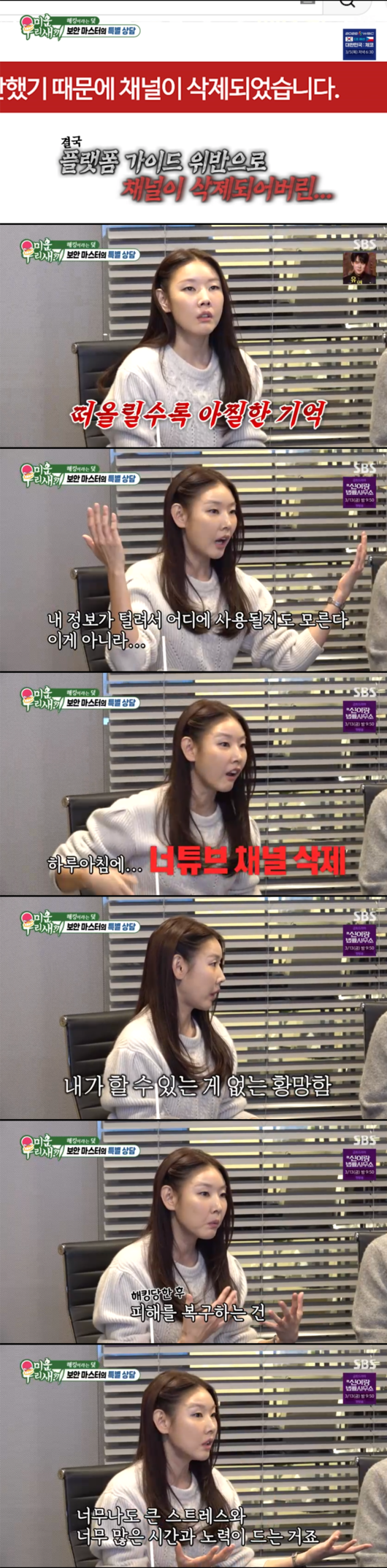 '미운 우리 새끼’ 한혜진이 자신의 유튜브 채널이 해킹으로 인해 하루아침에 삭제됐던 당시의 심경을 고백했다.
