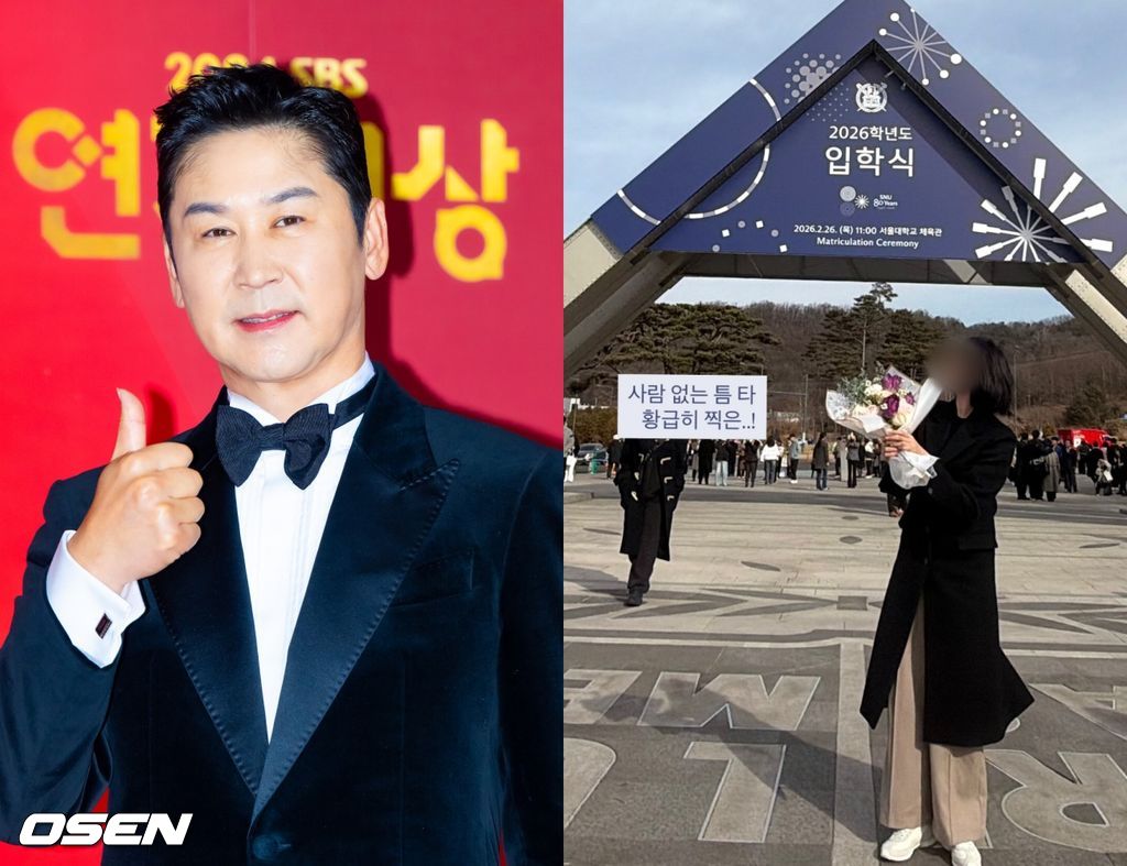 방송인 신동엽과 선혜윤 MBC PD의 딸 신지효 양이 오늘(26일) 서울대 입학식에 참석했다.