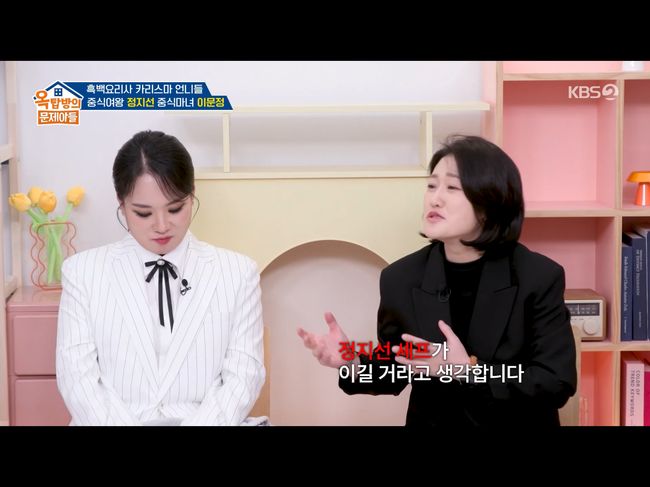 26일 방영한 KBS2TV 예능 ‘옥탑방의 문제아들’에서는 '흑백요리사'로 남다른 유명세를 누리는 이문정, 정지선 셰프가 등장했다. 이들은 중식계의 드문 여성 셰프들로, 사이 좋은 선후배였다. 정지선은 “알고 지낸 지 10년이 넘었다. 중식계에 여자가 드물어서 친해지고 싶었다”라고 말했고, 이문정은 “인상이 강렬했다. 그래서 이 바닥에서 살아남을 거 같다는 생각을 했다”라고 말했다.