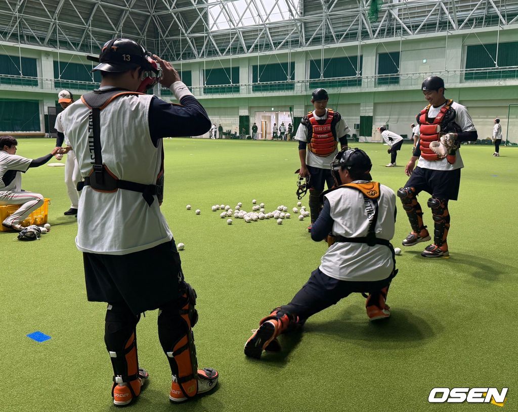 NPB(일본프로야구) 요미우리 자이언츠와 연습경기를 치를 예정이었던 한화 이글스가 연습경기 우천취소로 실내 훈련을 진행했다.