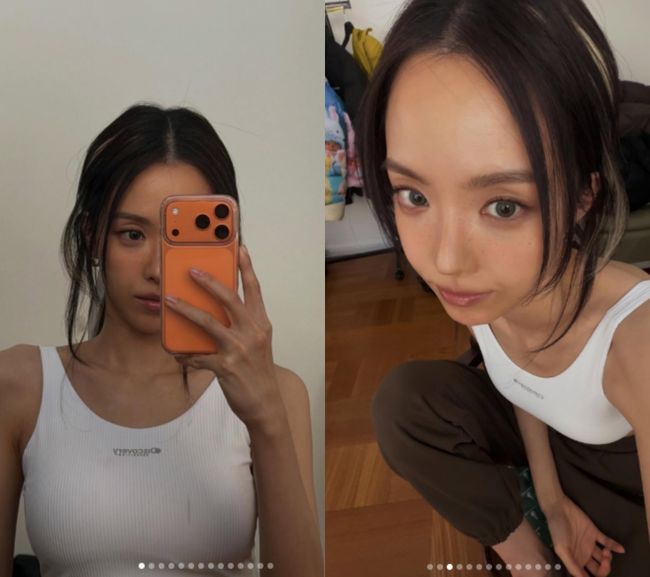 공개된 사진 속 손나은은 하얀색 브라톱을 입고 거울 셀카를 찍고 있다. 헤어 브릿지를 넣어 평소와 다른 스타일링을 선보인 그는 메이크업 역시 이국적인 비주얼을 뽐내 눈길을 사로잡았다.