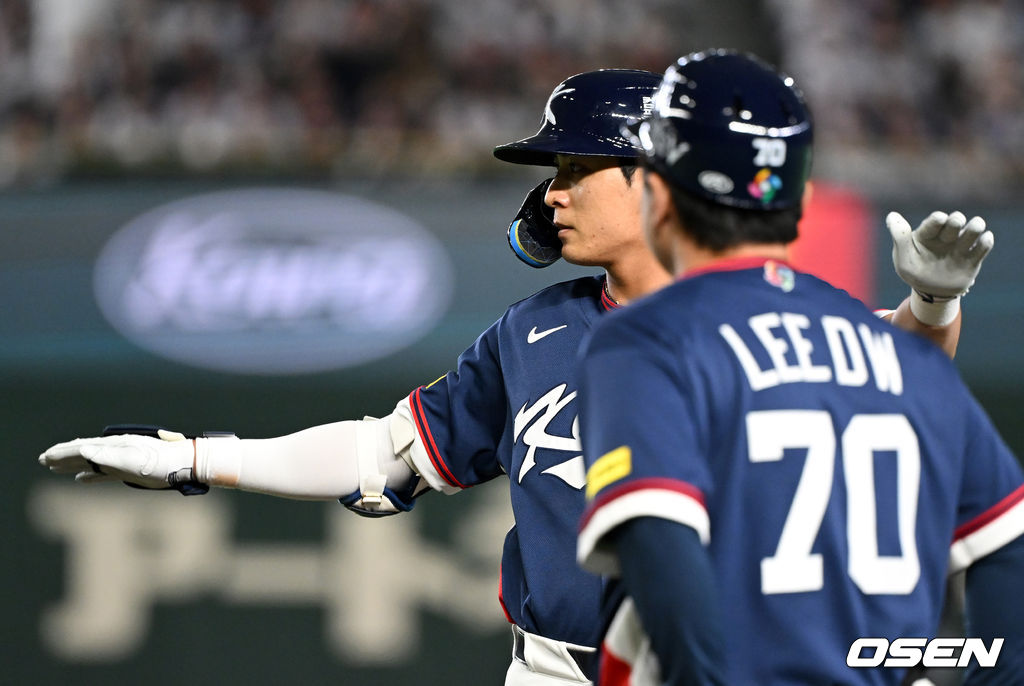1회초 무사 1,3루에서 한국 이정후가 선제 1타점 좌전 적시타를 날리며 세리머니를 하고 있다. 2026.03.07 /spjj@osen.co.kr